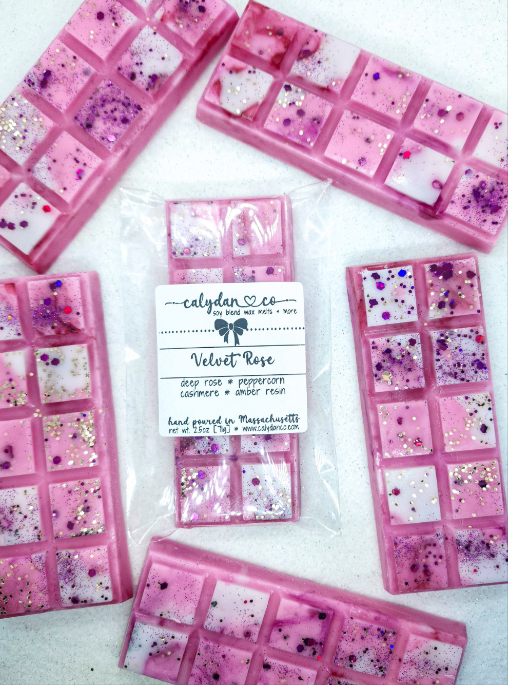 Our wax snapbar in "Velvet Rose" scent.